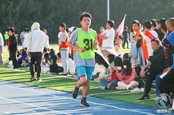 下午16时51分,教职工混合丙组4×100接力赛在裁判的口哨声中拉开帷幕,本次接力赛共七支代表队参赛,随着裁判哨声落下,运动员紧握手中接力棒,冲出起跑线,在冬日的暖阳里留下一道道奋力奔跑的身影。