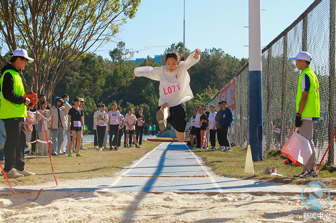 下午14时30分,我校于学校田径场举行女子乙组跳远预决赛。最终来自工商管理学院的刘嘉荣同学以4.55米的成绩夺得冠军;来自机电工程学院的王浩漩以4.27米的成绩荣获亚军;来自人文艺术学院的李盈瑶同学以4.20的成绩获得季军。女子乙组跳远决赛冠军刘嘉荣表示,在赛前最重要的就是锻炼腰部力量与弹跳力,上到赛场后有压力但不要紧张就能够发挥出稳定的成绩。他强调,虽然比赛重要,但是要在保护自己安全的前提下拼尽全力,尽可能不要让自己受伤。