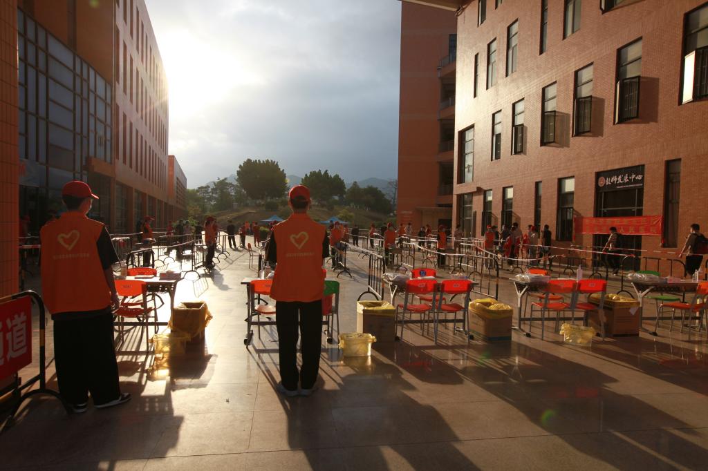 校党委书记韦荣,党委副书记、校长陈德清,党委副书记、纪委书记叶国英、副校长赖小景、王小宁、袁光华等校领导以及各职能部门负责人深入核酸检测现场,实地查看采样点区域划分、检测工作流程、服务保障、防控措施落实等情况,并看望慰问医护人员和志愿者等工作人员,要求全校各单位要按照属地管理部门的最新要求,以分秒不能等、分毫不能差的行动,从紧从严落实疫情防控各项举措,全力打好疫情防控阻击战。
