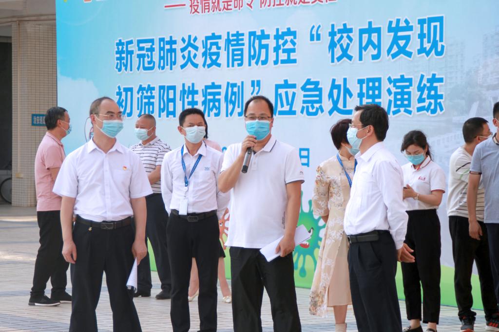 陈德清校长对此次演练进行总结。他表示,此次演练过程指挥有力、分工明确、协调有序,取得预期的效果,我校会按照疾控中心的要求去优化完善我校演练过程中发现的不足。他希望,全体师生以此次演练为契机,针对演练过程发现的问题查漏补缺,做好应对突发事件的思想准备和组织准备,进一步优化完善应急处置预案,强化各工作组、各部门之间整体联动和协同处置能力,进一步提高应急处置水平。