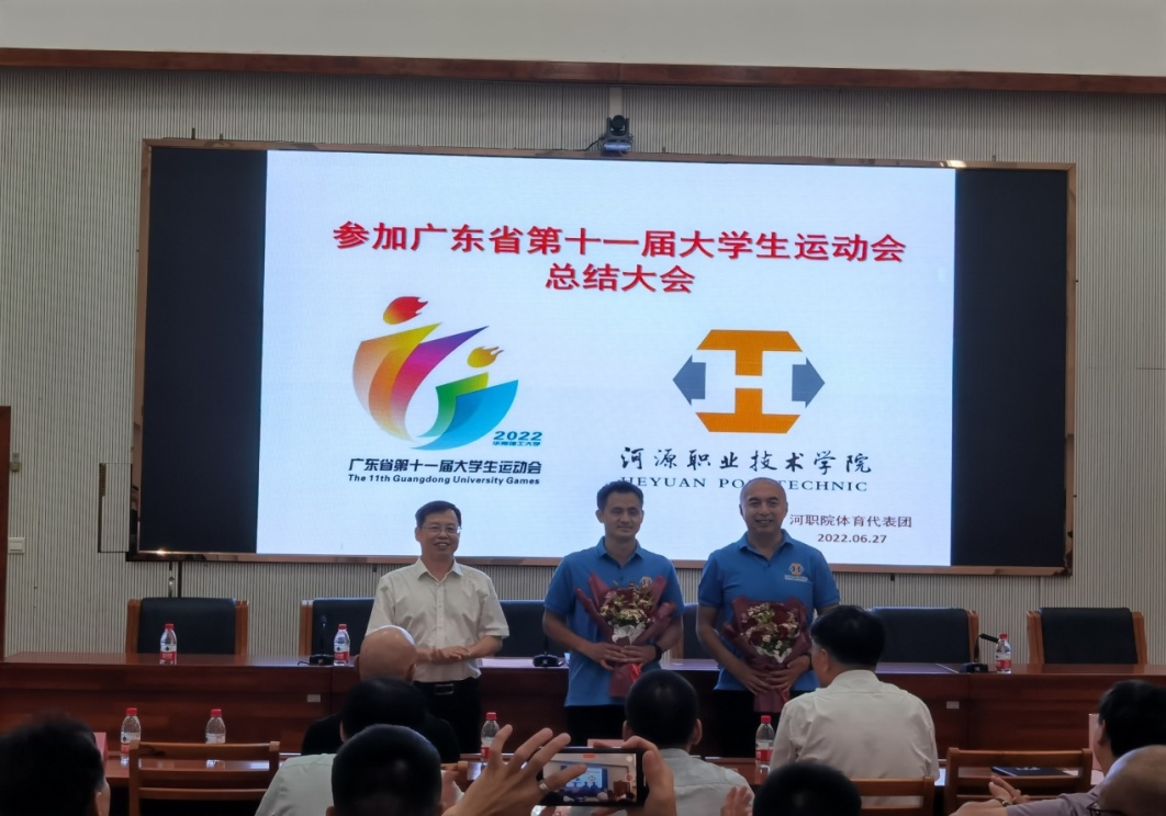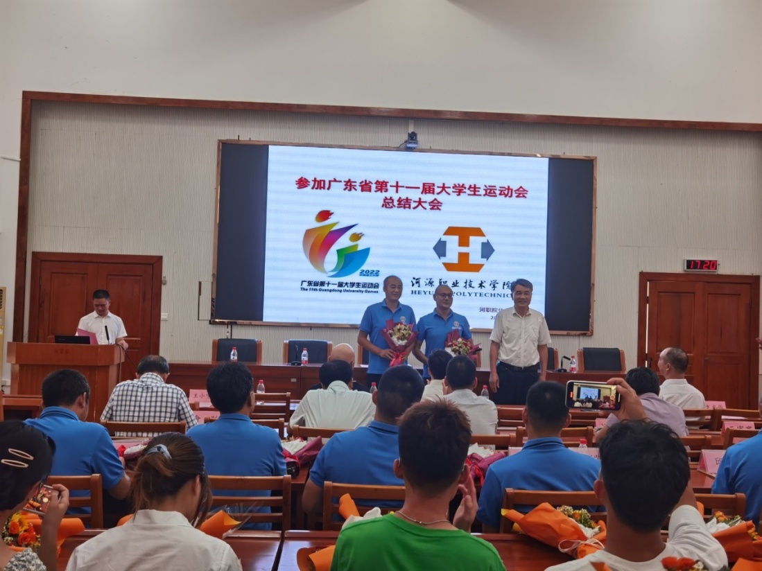 校长陈德清对全体运动员、教练员表示祝贺与感谢。他表示,我校高度重视体育教育工作,积极倡导“无体育、不河职”的体育精神,此次广东省大学生运动会成绩的历史性突破,必将激励我校师生更加积极地参与各项体育运动项目,不断树立和践行“我运动、我阳光、我健康”的体育观念。他为赛场上努力拼搏的教练员和运动员点赞,勉励大家作为学校体育运动的种子力量带动全校兴起体育运动之风。