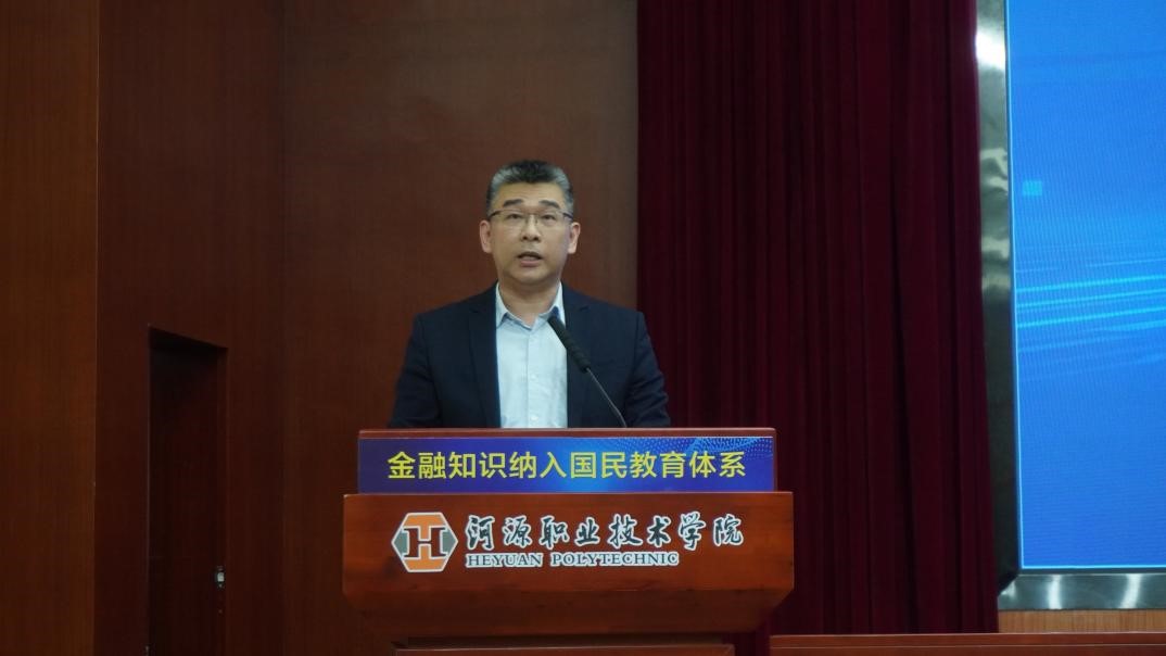 人民银行河源市中心支行总结了近年来推进金融知识进课堂工程的主要工作成效,并表示此次河源市金消协与河职院开展的产学研合作是河源市全面推进金融知识纳入国民教育体系的一项具体举措,希望河源市金消协及辖内的金融机构能够积极探索推进金融知识与校园文化和职业实践相结合等形式的金融素养教育,扎实开展好产学研合作的相关工作。