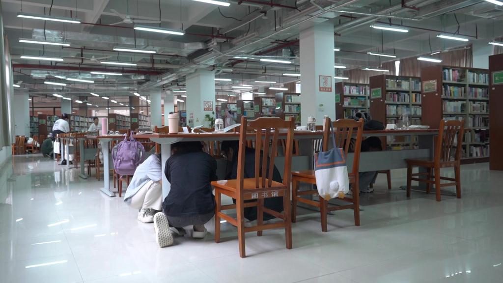 随着急促的警报声响起,图书馆馆长杨海燕和保卫处处长邓伟昌指挥图书馆各岗位人员迅速到达各自指定地点,确保每一楼层每个重要通道口均有人员指挥学生安全撤离。在工作人员的组织下,在馆近500名学生迅速蹲到阅读桌下避险,观察情况后抱头、掩住口鼻,快速撤离到最近的安全集合地点,整个过程用时3分钟。