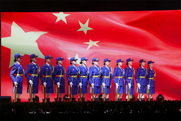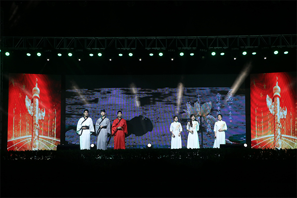 在筑梦乐团、梦寐乐队洋溢着青春激情的暖场节目后,韦荣书记、叶国英副书记、王小宁副校长、袁光华副校长、姚家芳副校长共同上台为本届文体艺术节开启帷幕。