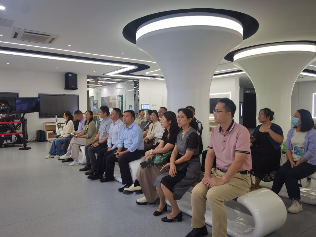 调研交流会上,李绍中介绍了公共虚拟仿真实训基地建设规划与资源应用、数据标准制定、大数据决策平台、数字孪生校园等整体建设情况。
