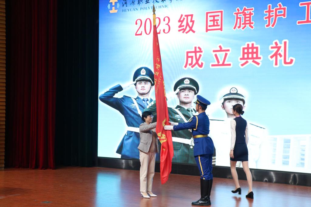 党委委员、汤剑冰主任为国旗护卫队颁授队旗