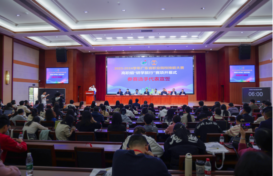 据悉,本次研学旅行技能大赛是广东省首次举办的赛项,报名参赛院校54所、队伍101支、选手202人,是省内规模最大的赛项之一。大赛设置研学旅行理论知识、研学旅行课程设计、研学旅行产品方案及单元展示三个模块,重点考查选手的研学旅行理论知识储备能力、研学旅行设计方案能力、研学旅行指导展示能力以及应急应变处理能力,旨在深度促进产教融合,培养研学旅行专业化人才。