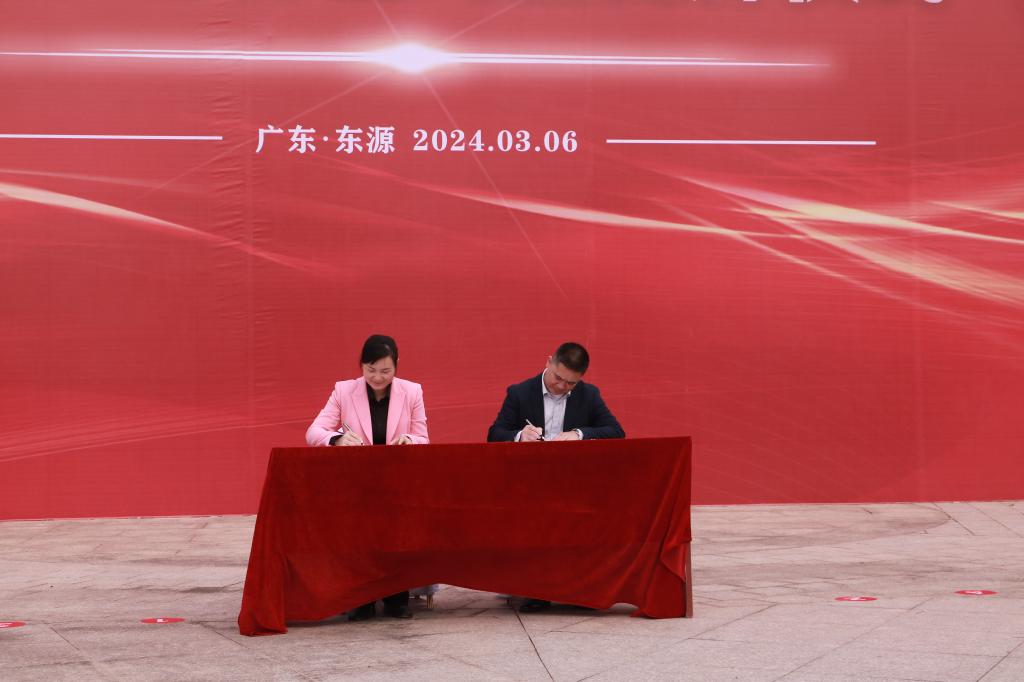 致辞完毕后,我校袁光华副校长与东源县陈飞燕副县长共同进行签约仪式。