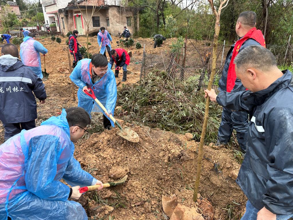 为深入学习贯彻习近平生态文明思想和习近平总书记视察广东重要讲话、重要指示精神,贯彻落实省委十三届二次、三次全会精神和“1310”具体部署,深入推进绿美广东生态建设,根据中共河源市直机关工委《关于充分发挥基层党组织战斗堡垒作用和广大党员先锋模范作用推动县镇村绿化绿美行动的通知》《mksports官方网站登录入口推动县镇村绿化绿美行动的活动方案》要求,充分发挥基层党组织战斗堡垒作用和广大党员先锋模范作用,推动“一名党员一个树、一个支部一片林”绿美活动深入开展,3月11日上午,王小宁副校长率学校各党支部党员代表前往龙川县赤光镇瑶坑村开展县镇村绿化绿美植树活动。