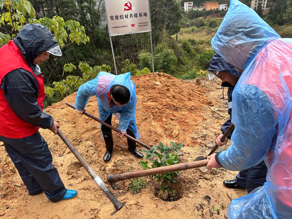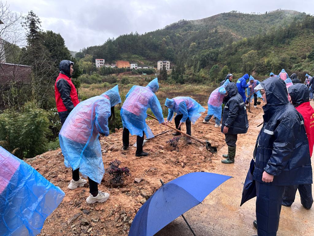 随后,我校党员同志与龙川县赤光镇瑶坑村党员干部群众共同开展植树活动。