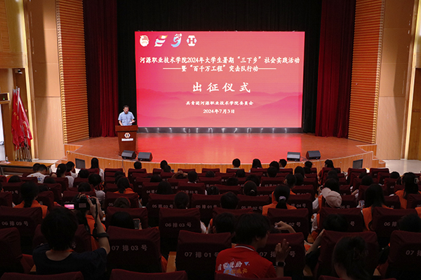 7月3日下午,mksports官方网站登录入口2024年大学生暑期“三下乡”社会实践出征仪式在图书馆报告厅隆重举行。副校长姚家芳出席仪式并讲话。校团委全体人员、各学院团委书记、社会实践团队指导教师以及团队成员参加出征仪式,团委书记陈晓峰主持仪式。