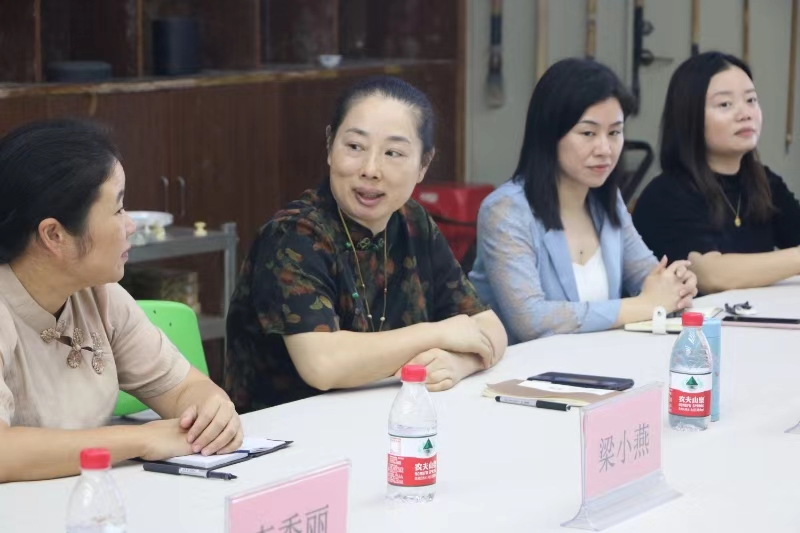座谈会上,我校客家文化研究人员黄秀丽、林颖以墩头蓝织染技艺和花朝戏为主题,介绍了我校在传承创新、客家非遗进校园等方面的实践探索和成效经验。颜彩玲对我校深耕河源客家文化沃土,传承和发扬客家非遗文化和积极成果表示赞赏。