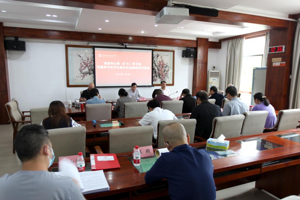 在全面推进依法治国的新时代背景下,我校党委理论学习中心组于11月3日召开专题学习会议,深入研讨全面依法治国的时代使命和实践要求。会议由校党委书记韦荣主持,党委理论学习中心组全体成员、各部门负责人参加学习。