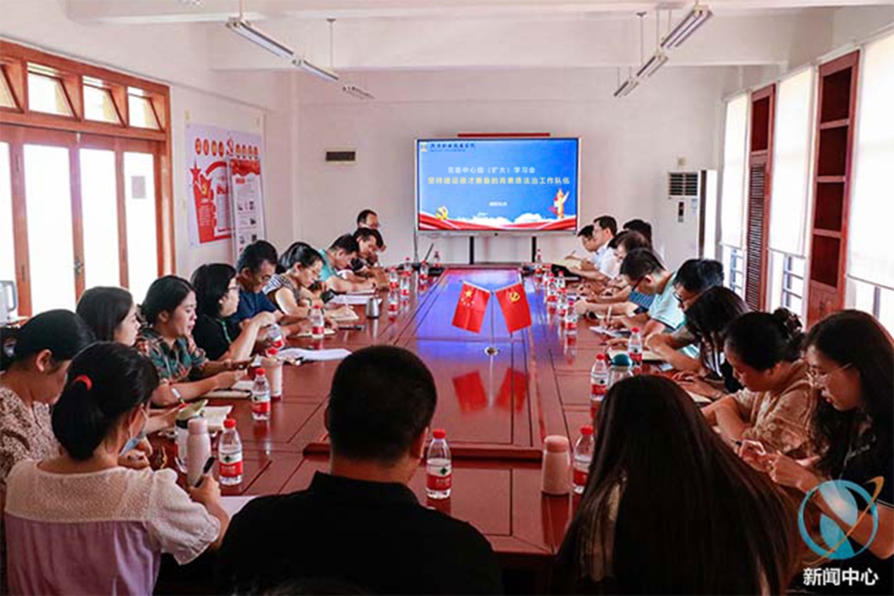 9月21日下午,我校党委理论学习中心组召开专题学习会议,深入学习贯彻习近平总书记关于建设德才兼备的高素质法治工作队伍的重要指示精神。会议由学校党委书记韦荣主持,党委理论学习中心组全体成员、相关部门负责人及马克思主义学院全体教师参加了学习。