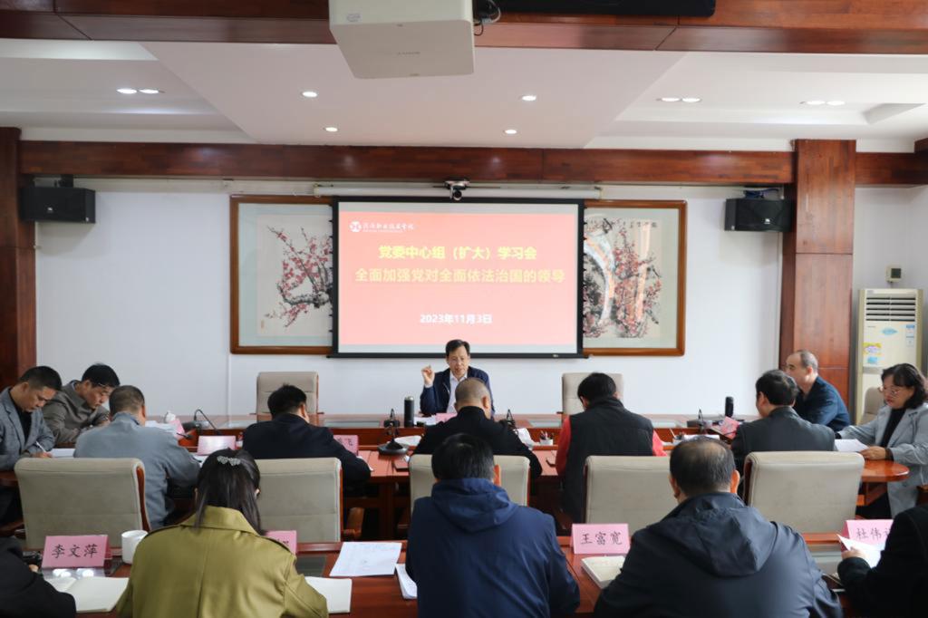 为深入贯彻落实党的全面领导,特别是加强党对依法治国的领导,我校党委中心组于11月3日召开专题学习会议。会议由学校党委书记韦荣主持,党委中心组全体成员、各部门负责人参加了学习。