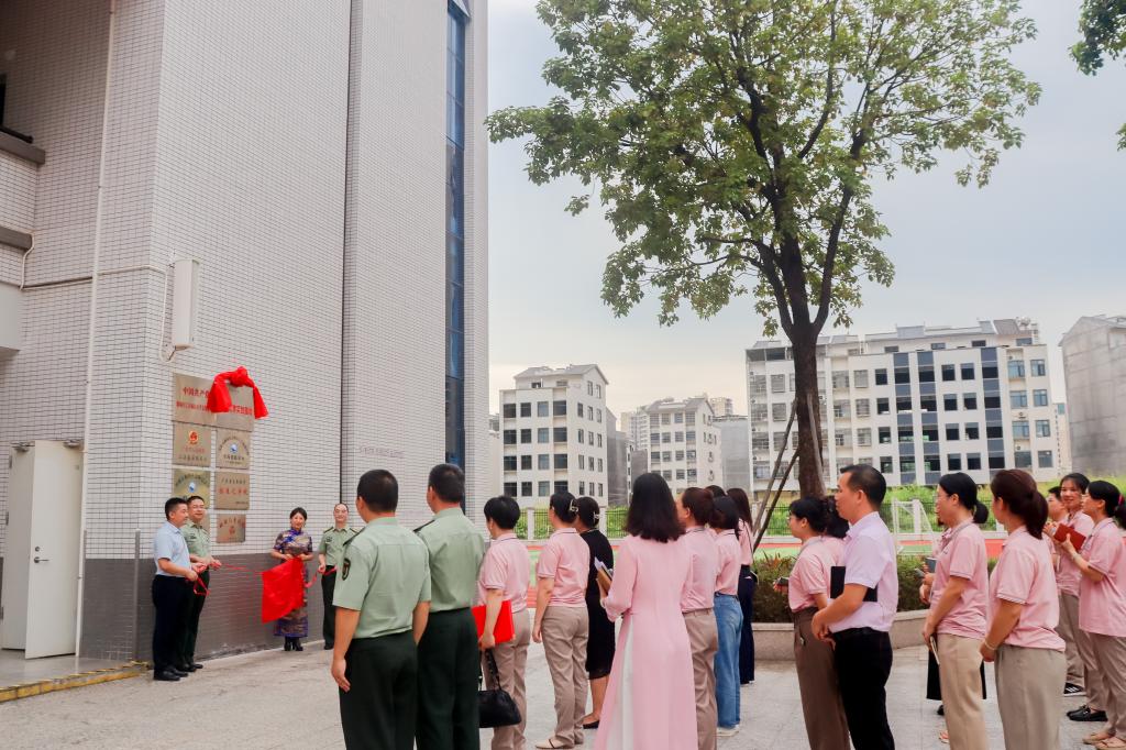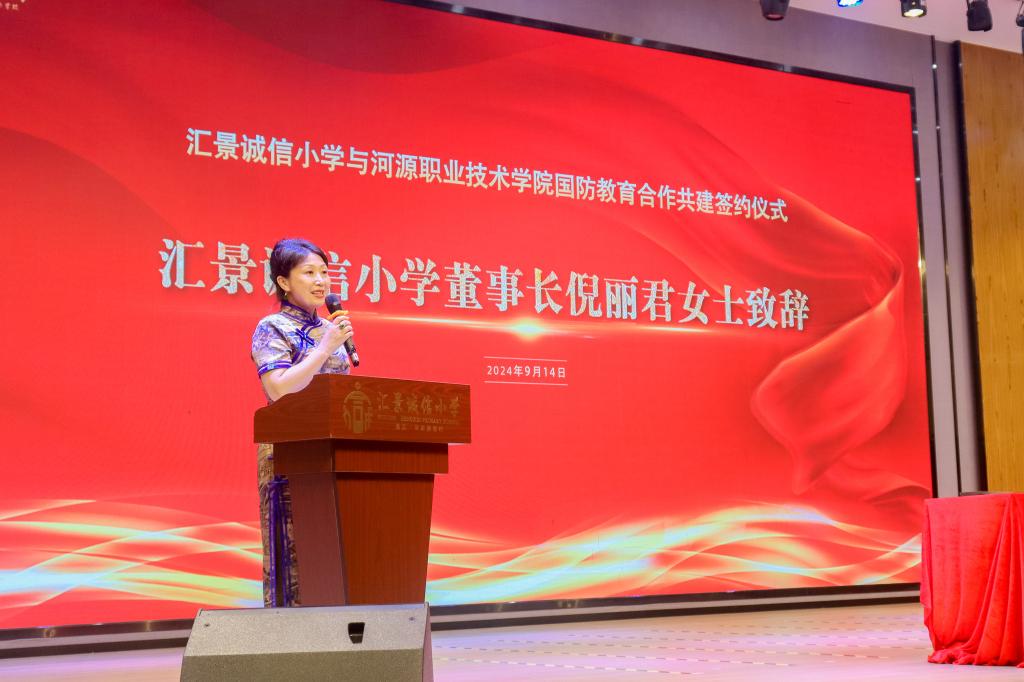 9月13日下午,mksports官方网站登录入口与汇景诚信小学国防教育实践基地挂牌暨国防教育合作共建签约仪式在汇景诚信小学举行。学校党委委员、副校长赖小景,武装部全体人员,汇景诚信小学董事长倪丽君女士,汇景诚信小学领导班子成员,教师代表共100余人参加仪式。