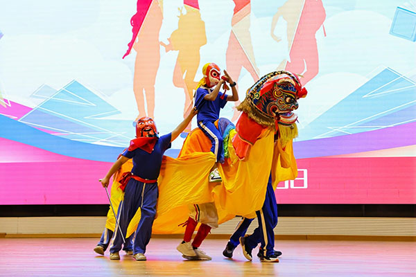 大学生艺术团舞蹈队带来开场舞《奋进新时代》,透过历史的眼眸,用舞蹈向我们诠释一个日新月异、继往开来的新时代;叶潭镇半埔小学瑞狮团带来的《客家舞狮》,是我校三下乡校地合作的成果,向观众展现了富有魅力的客家文化;我校师生深入畲族地区采风创作而成的民族特色舞蹈《畲乡欢歌》,将畲族文化用欢快的舞步和乐曲呈现在观众眼中;周艳妮老师以一曲《多彩万绿湖》,带观众领略四季皆绿,处处皆绿的万绿湖;由花朝戏协会带来的《血田英魂》选场“盼光明”,用客家独特的演绎风格,展现出革命英雄的热血奋斗,让观众们充分感受到了非物质文化遗产的魅力。
