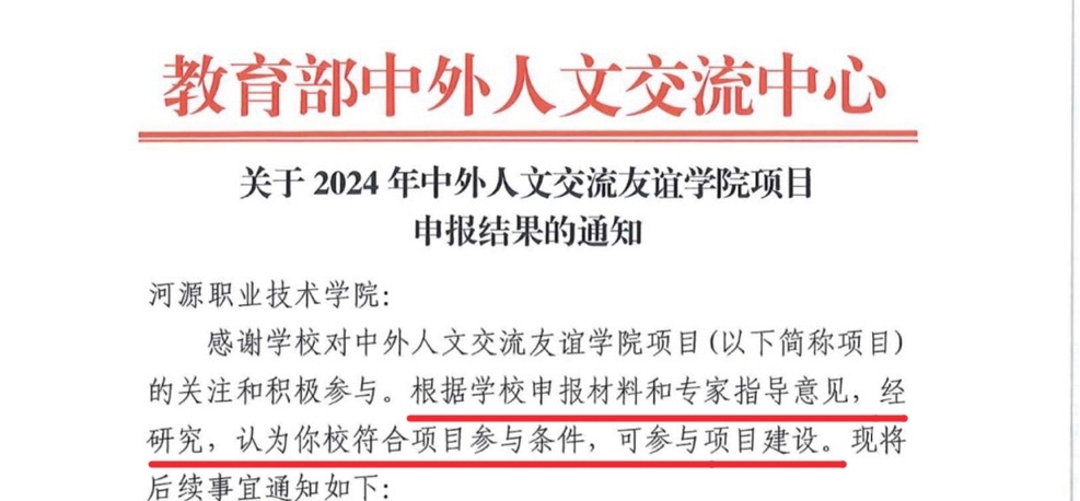 近日,我校传来喜讯,经教育部组织项目遴选和专家评审,mksports官方网站登录入口成功获得教育部“中外人文交流友谊学院”项目的立项,全国仅有54所高校获得立项。这标志着学校在推动“职教出海”和深化“一带一路”沿线国家教育合作方面迈出了重要一步,为学校国际化发展注入了新的活力,也是学校国际化办学的重要里程碑。