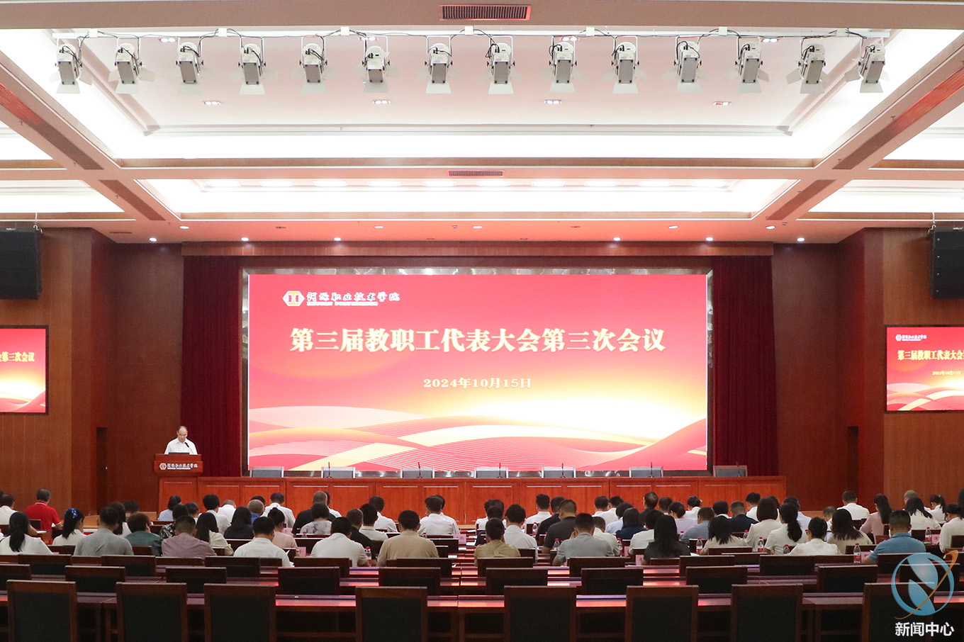 10月15日下午,mksports官方网站登录入口第三届教职工代表大会第三次会议在学术交流中心报告厅召开。本次会议的议题是审议表决《mksports官方网站登录入口职称评审制度文件》。会议由赖小景副校长主持,学校党委书记韦荣、校长刘贻新出席了会议。