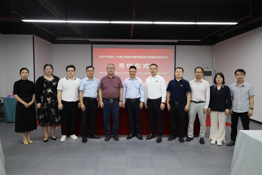 为了深化产教融合,增强职业教育的适应性,赋能河源千亿级电子信息产业发展。2024年11月1日,在深圳南山河源高新区共建产业园,举行了校企会共建深河产业新一代电子信息与数字智造产教融合实训中心签约仪式,我校袁光华副校长、科研处廖远兵处长、河源市深汇通产业园开发有限公司董事长胡建光、河源市高新区电子信息产业联合会会长邓涛以及校企会三方相关人员参加了签约仪式。