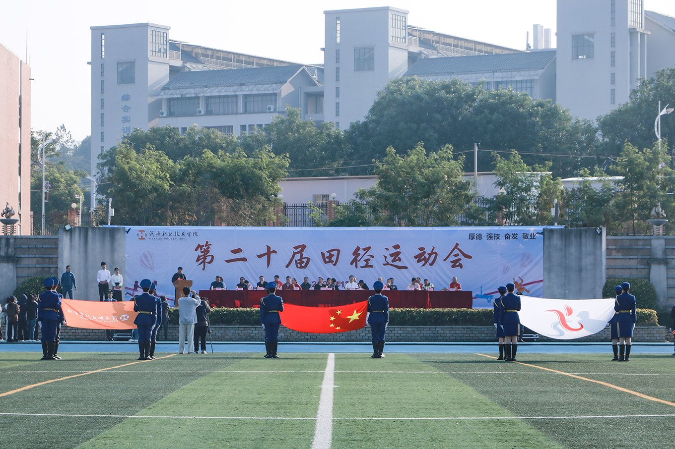 12月5日上午,我校第二十届田径运动会在全校师生的热切期盼中隆重开幕。学校党委书记韦荣,校长刘贻新,副书记钟茂开,副校长赖小景、袁光华、姚家芳等出席开幕式,各处室、各院部主要负责人以及全体裁判员、运动员和师生代表共同见证了这一激动人心的时刻。