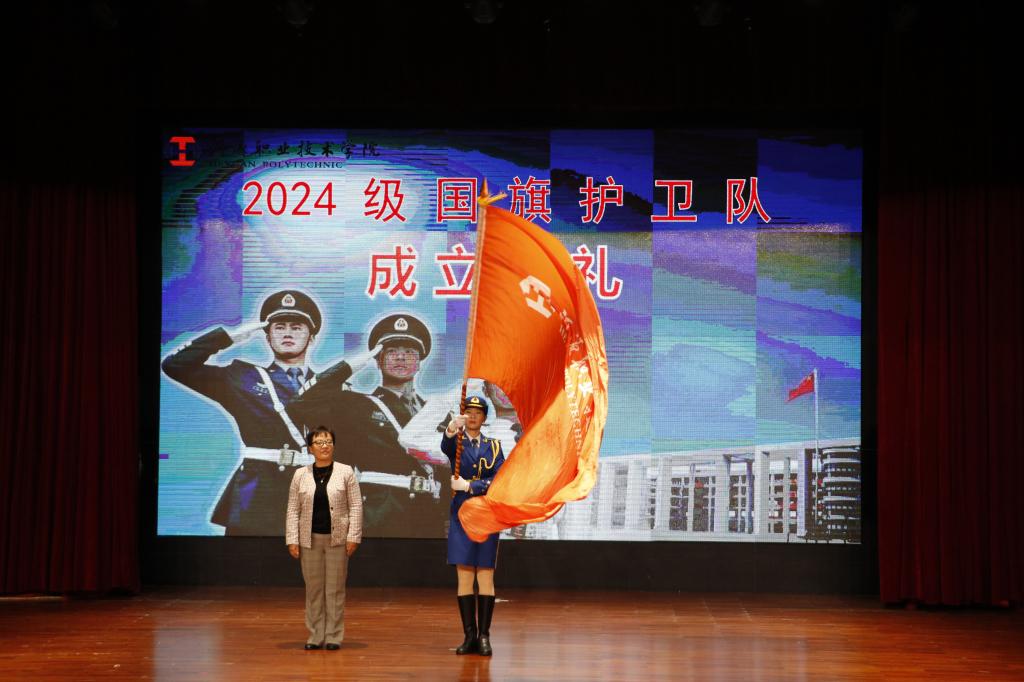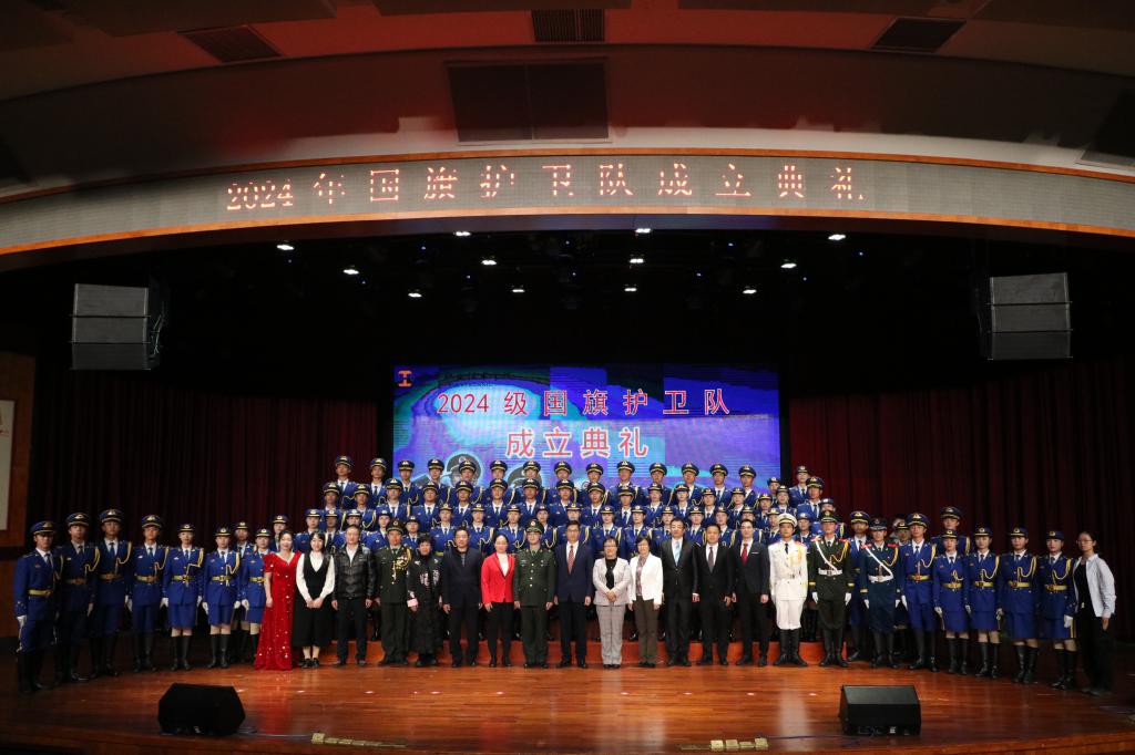 典礼伊始,全体参会人员共同观看了2023级国旗护卫队活动回顾及2024级国旗护卫队筹建情况视频。接着进入奏唱国歌环节后,仪式结束后进行授旗及授臂章环节,钟茂开副书记、赖小景副校长、姚家芳副校长为新一届国旗护卫队颁授国旗、队旗、校旗。