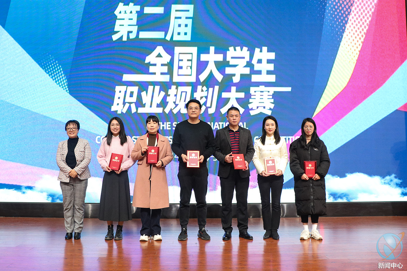姚家芳副校长、人文艺术学院张超副书记、工商管理学院邹东平副书记分别成长赛道获奖选手、就业赛道获奖选手、优秀指导老师颁奖。