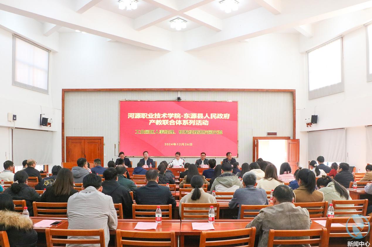 12月26日,mksports官方网站登录入口与东源县人民政府产教联合体系列活动——东源工业园区人事经理、研发经理进校园交流活动,在我校行政楼C108会议室圆满落幕,我校校长刘贻新出席,科研处处长廖远兵主持。