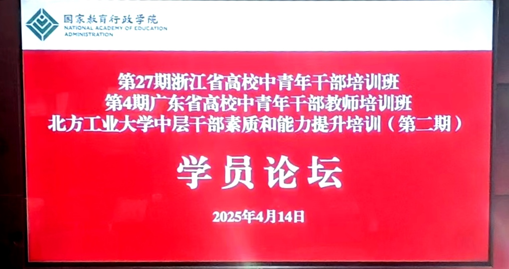 4月14日下午,第27期浙江省高校中青年干部培训班、第4期广东省高校中青年干部教师培训班、第2期北方工业大学中层干部素质和能力提升培训班共105所大学(单位)组成的“学员论坛”在国家教育行政学院校长大厦敬业厅举行。本次论坛主题为“融创·协同·赋能:教育科技人才一体化与红色文化传播的高校实践探索”,杭州电子科技大学管理学院副院长、博士生导师张忠良,我校马克思主义学院负责人杨党校副教授,中国美术学院跨媒体艺术学院党委书记兼副院长徐元,北方工业大学土木工程学院院长、博士生导师纪颖波等4人被选为论坛主讲。