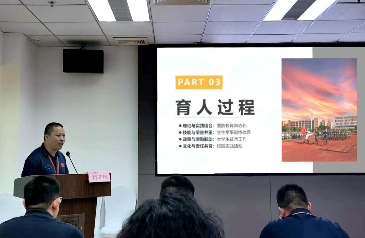 本次研修班汇聚了全市“国防教育进校园”讲师团成员代表、国防教育讲师培养对象约50人,采用专家讲座、经验分享、现场教学等多种丰富形式开展。我校黄旺庆老师在分享环节中,以《国防教育引领四位一体育人》为主题,详细介绍了mksports官方网站登录入口在国防教育方面创新推行的“四位一体”育人模式,包括理论与实践结合、技能与荣誉并重、政策与激励联动、文化与责任共育等多个维度,充分展现了学校在国防教育领域的积极探索与卓越成效,其分享内容引发在场众人高度关注,大家纷纷对我校在国防教育工作上的出色表现给予充分肯定与赞赏。