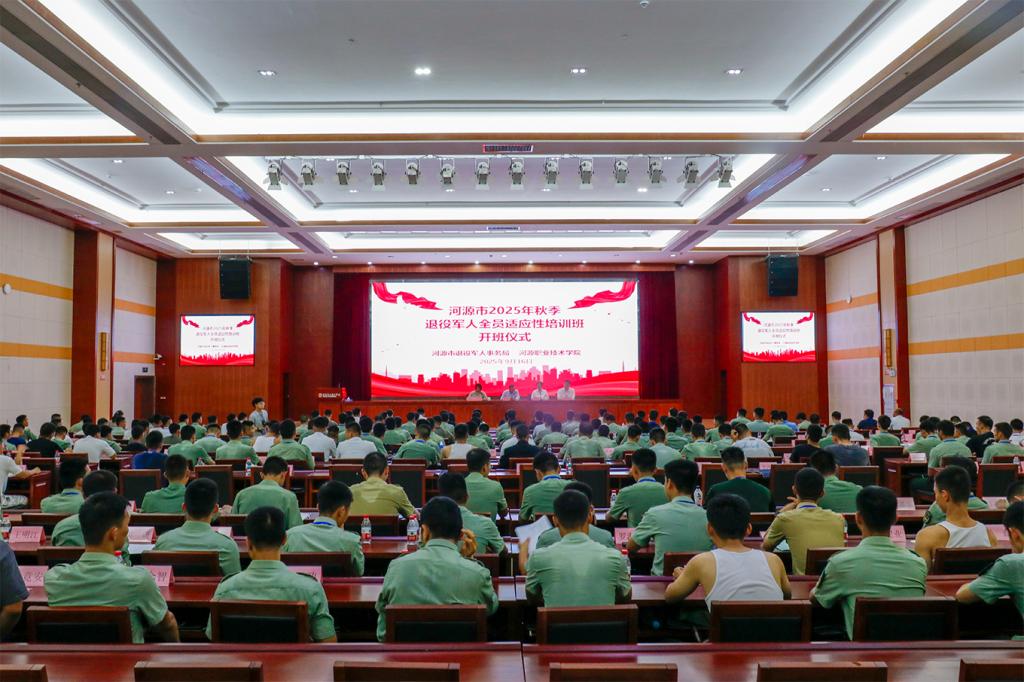 9月16日,河源市2025年秋季退役军人全员适应性培训班开班仪式在我校学术交流中心报告厅举行。河源市退役军人事务局党组成员、副局长葛志伟,学校副校长姚家芳,市、县(区)退役军人事务局、江东新区退役军人服务中心及市退役军人志愿者服务队相关人员,河源市2025年秋季退役军人224人参加开班仪式。继续教育学院院长李文萍主持开班仪式。