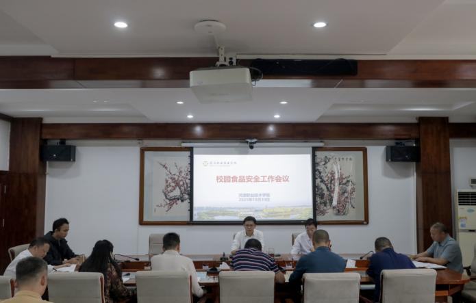 为全面筑牢校园食品安全防线,保障师生饮食健康与生命安全,2025年10月30日,我校在行政楼第一会议室召开校园食品安全工作会议。校长刘贻新、副校长王小宁出席会议,党委宣传部、学生工作处、团委、资产后勤处、财务处、保卫处和工会等学校食品安全工作领导小组成员参加会议。会议由王小宁副校长主持。