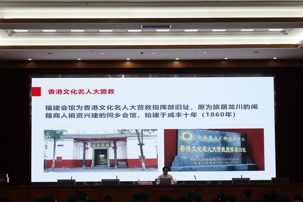 课堂上,刘校长带领同学们回顾了抗战时期的峥嵘岁月,特别是东江纵队在河源地区的英勇事迹与“香港文化名人大营救”的历史壮举。他强调,抗战精神是中华民族宝贵的精神财富,新时代青年要从中感悟民族气节与责任担当。他指出,和平年代“战场”已从烽火一线转向科技攻坚与技能报国。他列举了中国在高铁、5G、航天、北斗导航、人工智能等领域的重大成就,并特别介绍了我校学子在世界职业院校技能大赛中取得的优异成绩,鼓励同学们将工匠精神作为新时代的“精神武器”,把每一道工序、每一次实训视为一场“新阅兵”。
