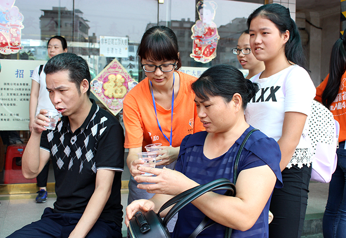 志愿者为家长送上茶水 服务在行动 魅力数青春 12日,我校新生入学报到进入第二天,烈日当空,迎新现场熙熙攘攘,志愿者忙得不亦乐乎。 拉着行李箱回宿舍的路上,志愿者们放慢了脚步,向新生详细介绍着沿途的建筑物,回答新生关心的问题。他们随时都面挂微笑,以青春颜值开展魅力服务。 “我觉得师兄师姐挺辛苦的,他们很热情地帮助我们。”新生们简单的一句话饱含了对志愿者的感激之情。位于东门咨询处的一名志愿者坦言,分叉口的工作比较繁忙,但是帮助新生解决问题让他体会到志愿服务带来的快乐。在家长休息区,家长们赞叹我校环境优美,迎新工作安排周到,同时也对志愿者的辛勤服务报以赞扬。 |