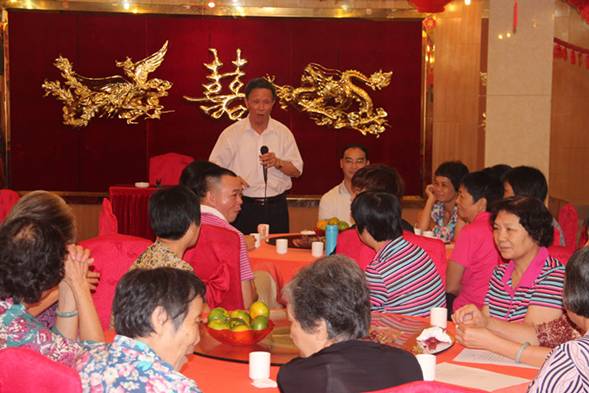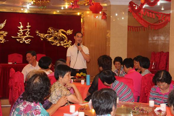 赖小景向离退休教职工介绍了我校的发展情况,感谢他们为学校开创基业所付出的艰辛努力和为学校建设与发展所做出的重要贡献,为他们送上学校制作的中秋月饼,并衷心祝愿他们节日快乐、身体健康、生活幸福!