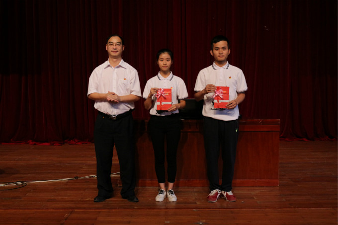 仪式在庄严的国歌声中拉开帷幕。学员代表王紫苑和刘嘉琳两位同学表示,“青马工程”培训班是锻炼意志、提高思想觉悟的课堂,我们一定主动学习,以饱满的热情投入到培训学习中,在生活中实践自己的诺言,成为一名优秀的共青团员。接着,赖小景副校长为学员代表赠送了由学校团委编印的新版“青马工程”培训班学员教材。