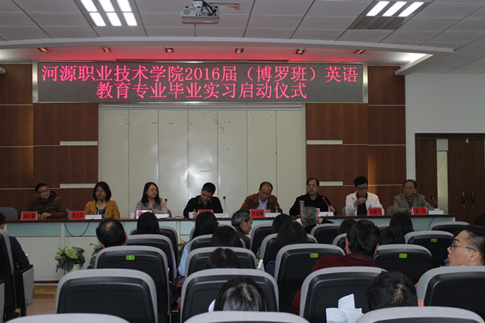 3月4日下午,我校与博罗县教育局“政校合作”定向培养的2011级英语教育(五年制)1.2班(以下简称博罗班)实习动员会在博罗县教育局会议厅举行。该县教育局叶志雄局长,我校唐汉芳副校长、教务处与人文学院负责人、实习指导老师及博罗班60名实习生参加了会议。会议由博罗县教育局林立领副局长主持。