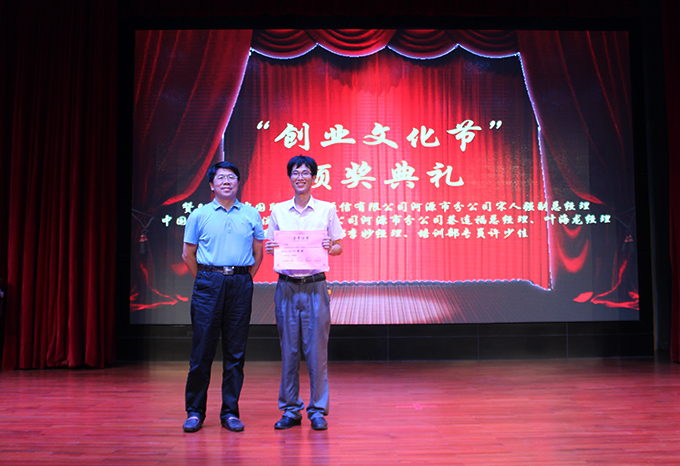 刘安华校长为获得优秀创业导师一等奖的老师颁奖