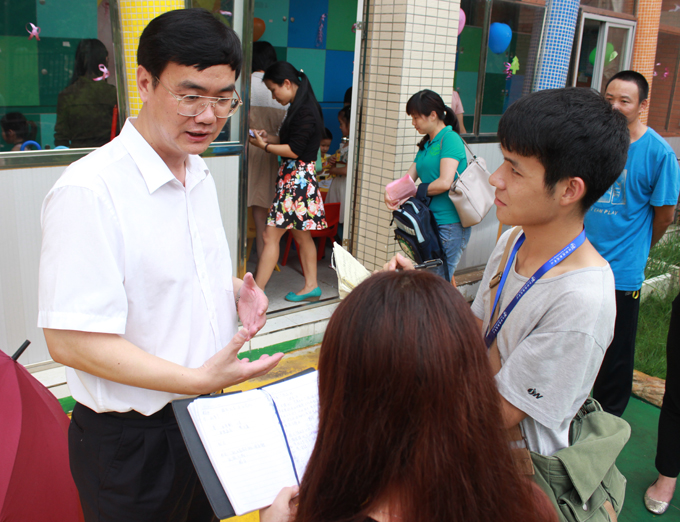 5月27日下午,校党委书记段邦贤来到“河职院附属幼儿园”,对“青青乐园”五点学堂的学员们给予亲切问候。同行的有学校工会负责人、“青青乐园”主要负责人沈小华。
