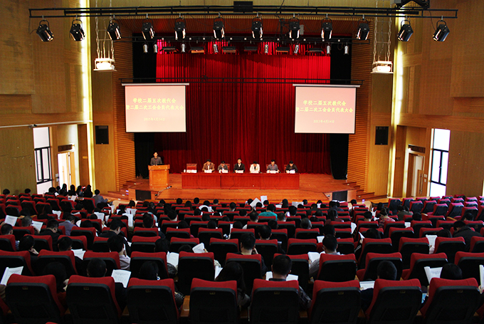 4月14日,我校在学术报告厅召开二届五次教代会暨二届二次工会会员代表大会。我校党委书记段邦贤、校长刘安华、副校长唐汉芳、党委副书记韦荣、副校长陈德清和陈农心以及我校工会会员代表参加此次会议。副校长赖小景主持大会。