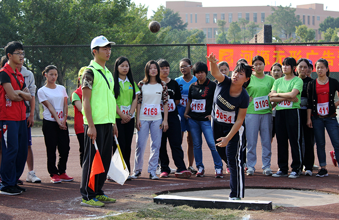 26日下午,在学生组女子铅球决赛中,来自工商管理学院的李秀雯、李晓红、李霏霏将冠亚季军收入囊中。