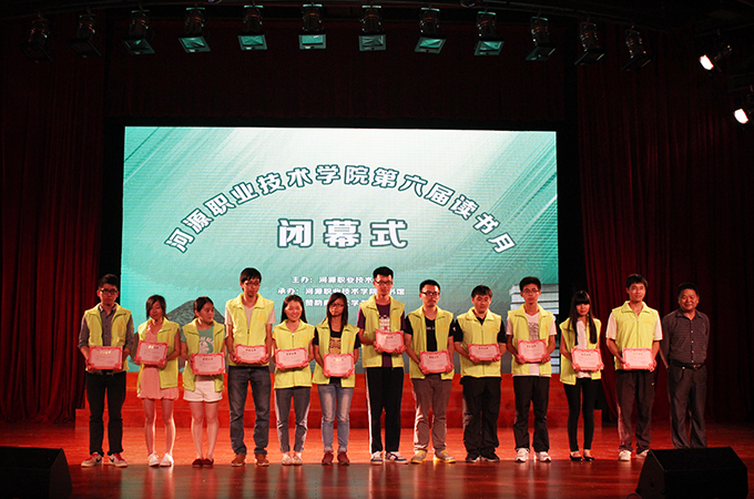 5月27日晚,我校在艺术楼演播厅举行第六届读书月闭幕式,党委副书记韦荣、图书馆馆长赖新优、各协会代表及图书馆全体人员出席了闭幕式。