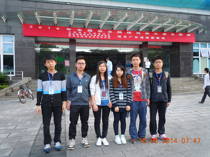 5月11日,2014年全国职业院校技能大赛高职组“基站建设维护及数据网组建”赛项广东选拔赛在深圳职业技术学院落下帷幕,我校派出的两支代表队均获得二等奖的佳绩,其中由移动通信技术专业学生董若伟、卢耿鹏和钟晓媛组成的代表队获得第三名,将代表广东省参加6月底在天津举行的全国总决赛。
