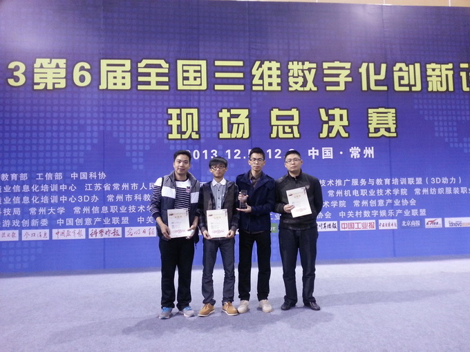 12月5日-8日,2013年第六届全国三维数字化创新设计大赛总决赛在江苏常州“科教城”擂响战鼓,我校学子与来自全国30多个省市、地区的专本科院校及职业组400多支队伍同台竞技,经过激烈角逐,我校电信学院计算机多媒体技术专业参赛队“墨香”的参赛作品“中华建设文化之客天下”在“数字表现设计”大赛中获得全国二等奖,机电工程学院曾天文、刘军辉老师指导的参赛作品《五轴迷你数控铣床》在工业工程竞赛项目的角逐中获得全国三等奖。