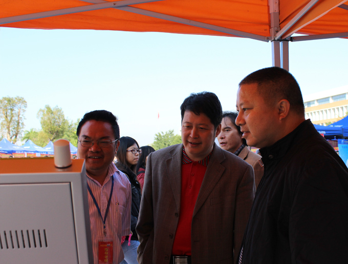 陈农心副校长一行在查看招聘信息查询机