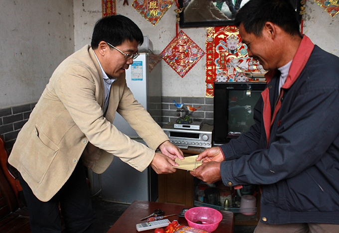 慰问队伍步行数公里乡道,深入到偏远的贫困户,详细了解贫困户的家庭生产、生活开支、子女就学、长幼健康等家庭基本情况及存在的困难,为贫困户的脱贫致富“想点子”、“出办法”,并为每一户送上扶贫慰问金。