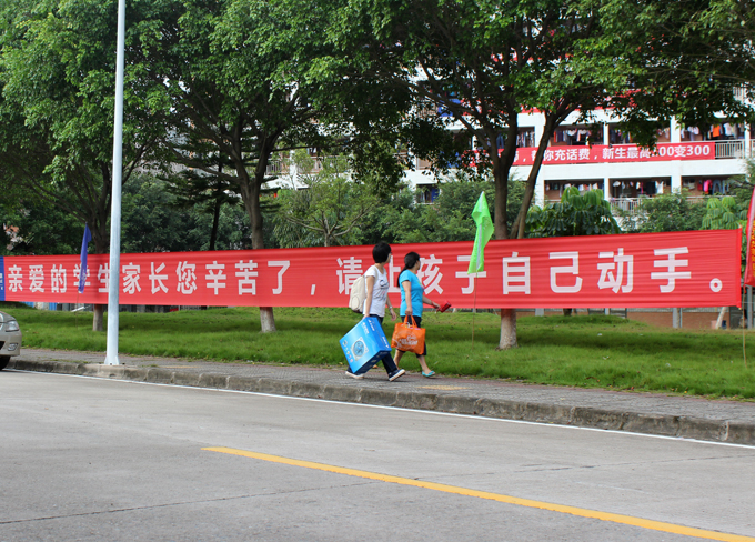 记者在迎新现场看到,“亲爱的学生家长您辛苦了,请让孩子自己动手”、“河职院男生们谦恭礼让展君子风度,河职院女生们和声细语显才女气质”、“天行健,学长以实力打倒高富帅;地势坤,学姐凭智慧战胜白富美”等宣传拱门和横幅标语装点着校园,看似诙谐的标语,认真读起来却令人深思。来自各地的莘莘学子们载着梦想与希望走进新校园,开始了他们新的学习起点和人生旅途。