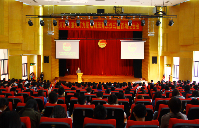 4月14日,学校于学术报告厅举行第九期团校培训班开班仪式暨首场报告会。副校长赖小景希望男生要勇当“高富帅”(高在知识、富在精神,帅在行动)、女生要争当“白富美”(白在品行,富在内涵,美在心灵)。校团委全体老师、各学院团总支书记及培训班全体学员参加了仪式。