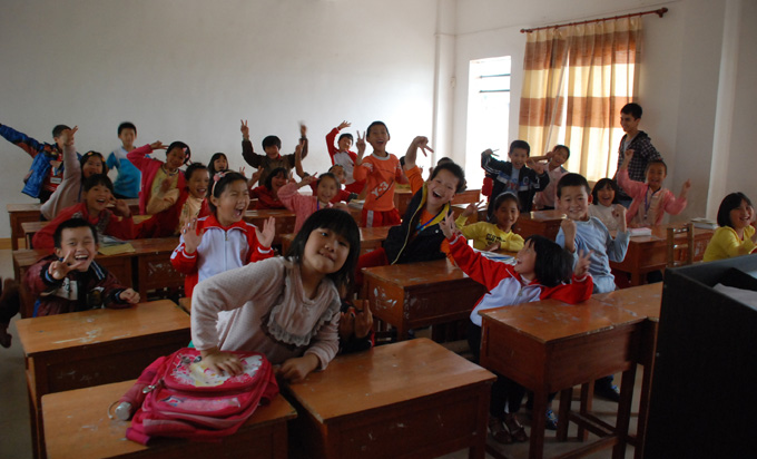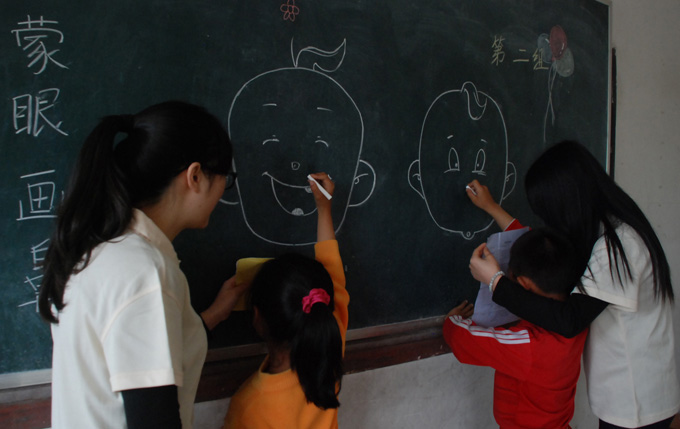 | “七彩课堂 快乐支教”,支教志愿者的到来让小朋友们的课堂异常活跃 |