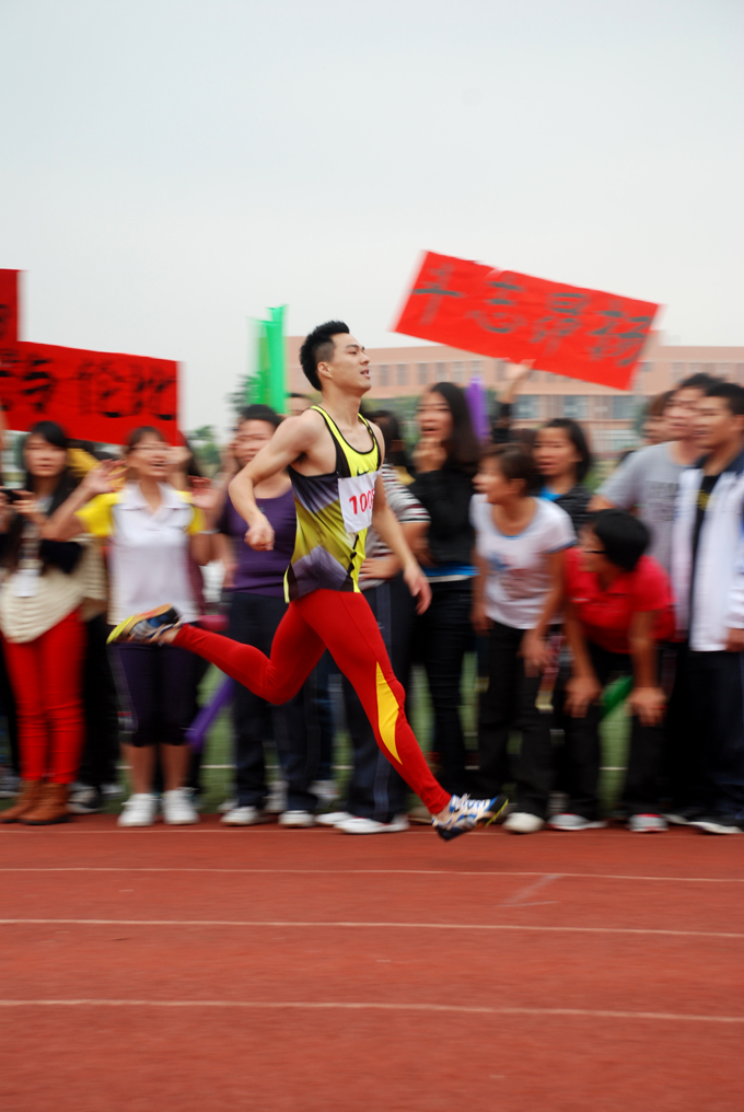 教工男子100米决赛随着枪鸣声在如火如荼地进行着,人文学院古伟民老师以旋风般的速度一路领先,最终以11秒39的佳绩打破上年记录获得此项目的冠军。机关工会代表队的谢新苑老师以11秒93的成绩夺得亚军,机电工程学院的黄新栋老师以12秒93的成绩获得季军。